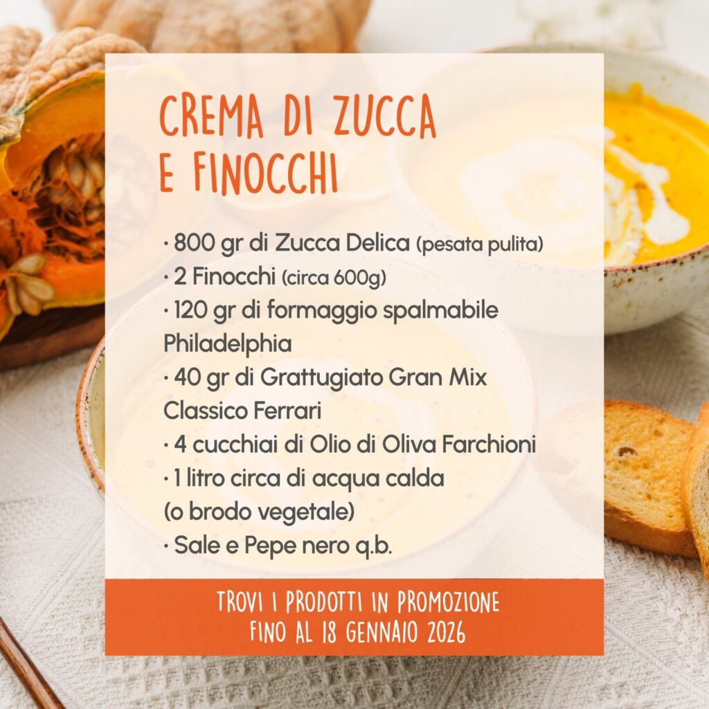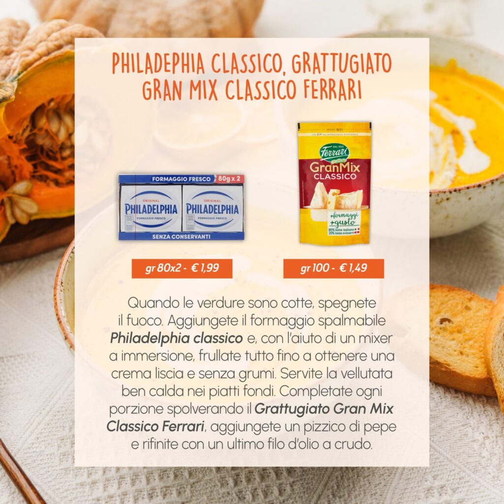 La crema di zucca e finocchi è un incontro speciale tra la dolcezza della zucca e la nota profumata del finocchio, reso irresistibile dalla cremosità del Philadelphia e dal tocco del Grattugiato Gran Mix Ferrari!