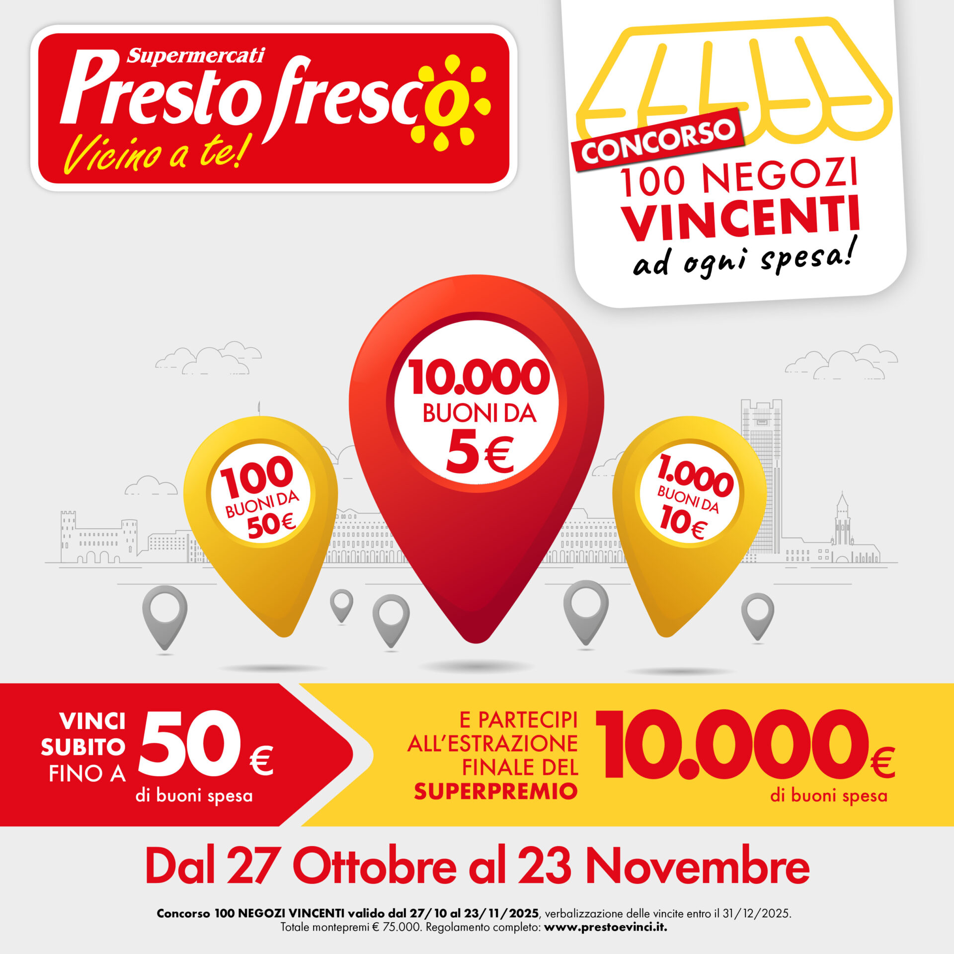 Oltre alle promozioni settimanali, nei supermercati Prestofresco abbiamo sempre più di 150 prodotti a marchio Crai a prezzo bloccato ribassato